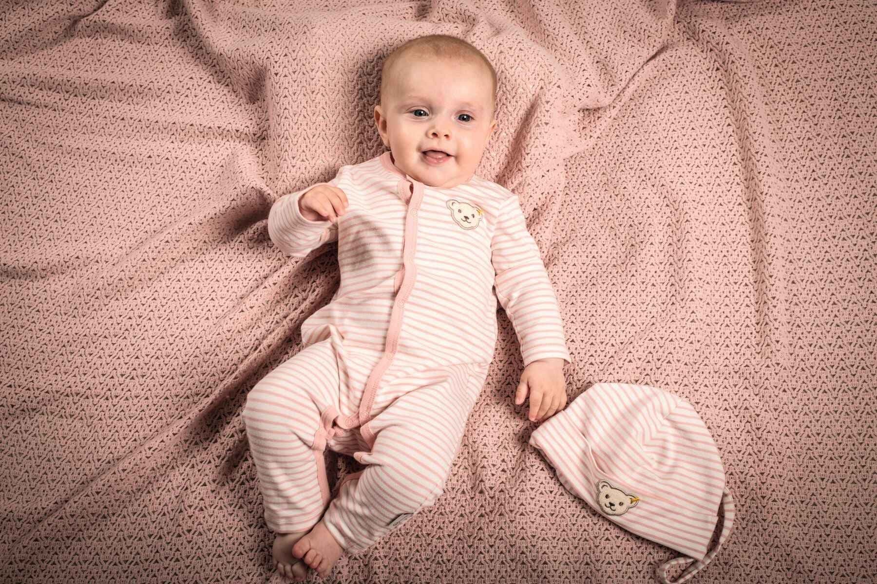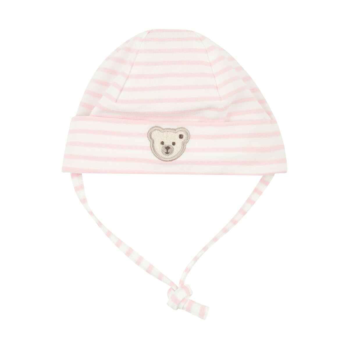 Мила шапочка в ніжну смужку стане ідеальним аксесуаром для прогулянок у будь-яку пору року. М'який подвійний шар джерсі забезпечує тепло і комфорт, ніжно прилягаючи до голівки малюка. Шапка створена на основі безпечної сертифікованої бавовни, яка не викликає подразнень і має м'яку, приємну текстуру.