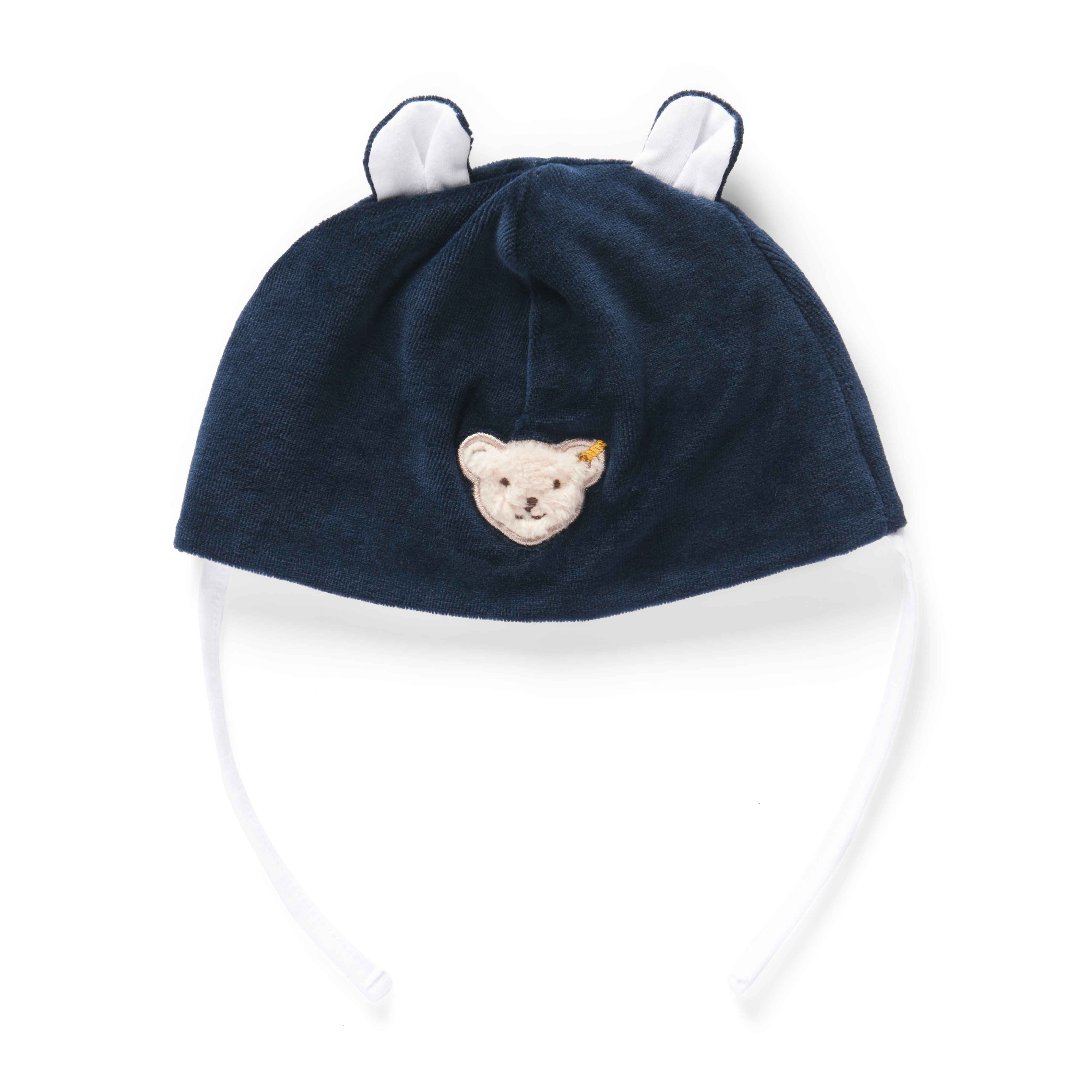 Шапка Special Day для малюків виготовлена на основі органічної бавовни з приємною велюровою текстурою. Матеріал абсолютно безпечний для ніжної шкіри дитини і не викликає подразнень. М'які стрічки-шнурочки дають змогу регулювати посадку. Вушка ведмедика на шапці та оригінальна аплікація у вигляді пухнастого ведмедика Steiff Teddy додають виробу особливого шарму. Усі матеріали пройшли суворий контроль якості, що гарантує максимальний комфорт під час носіння.