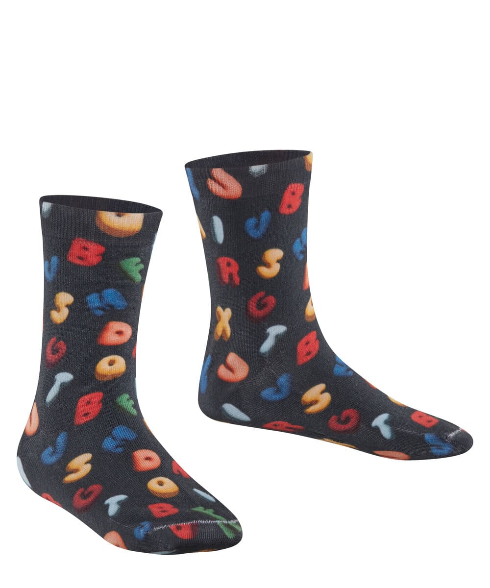 Шкарпетки Colourful Alphabet Print об'єднують комфорт, практичність і веселий дизайн. М'яка, приємна до шкіри тканина на основі бавовни проста у догляді. Фірмова посадка FALKE Perfect Fit гарантує ідеальне прилягання без тиску. Завдяки інноваційному 360-градусному принту, весь виріб прикрашають різнокольорові літери