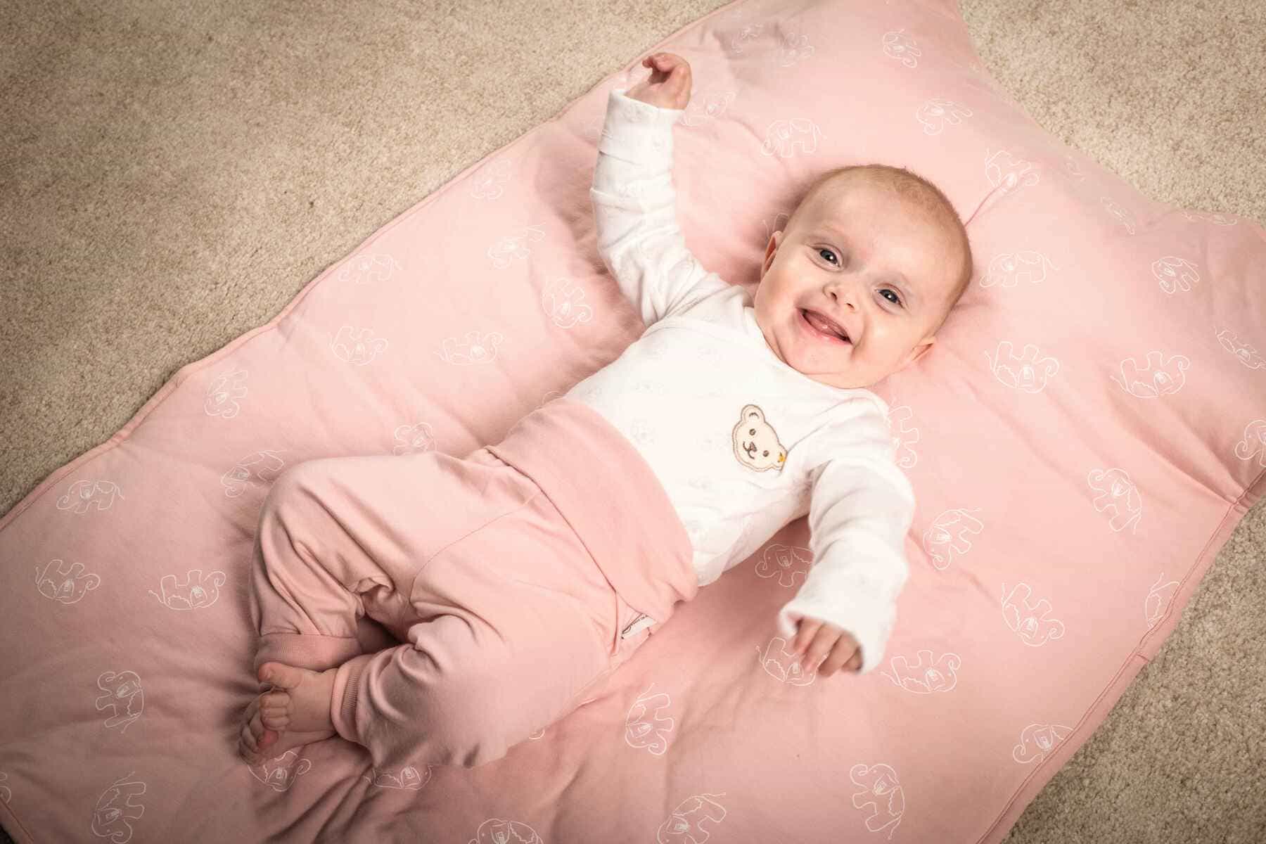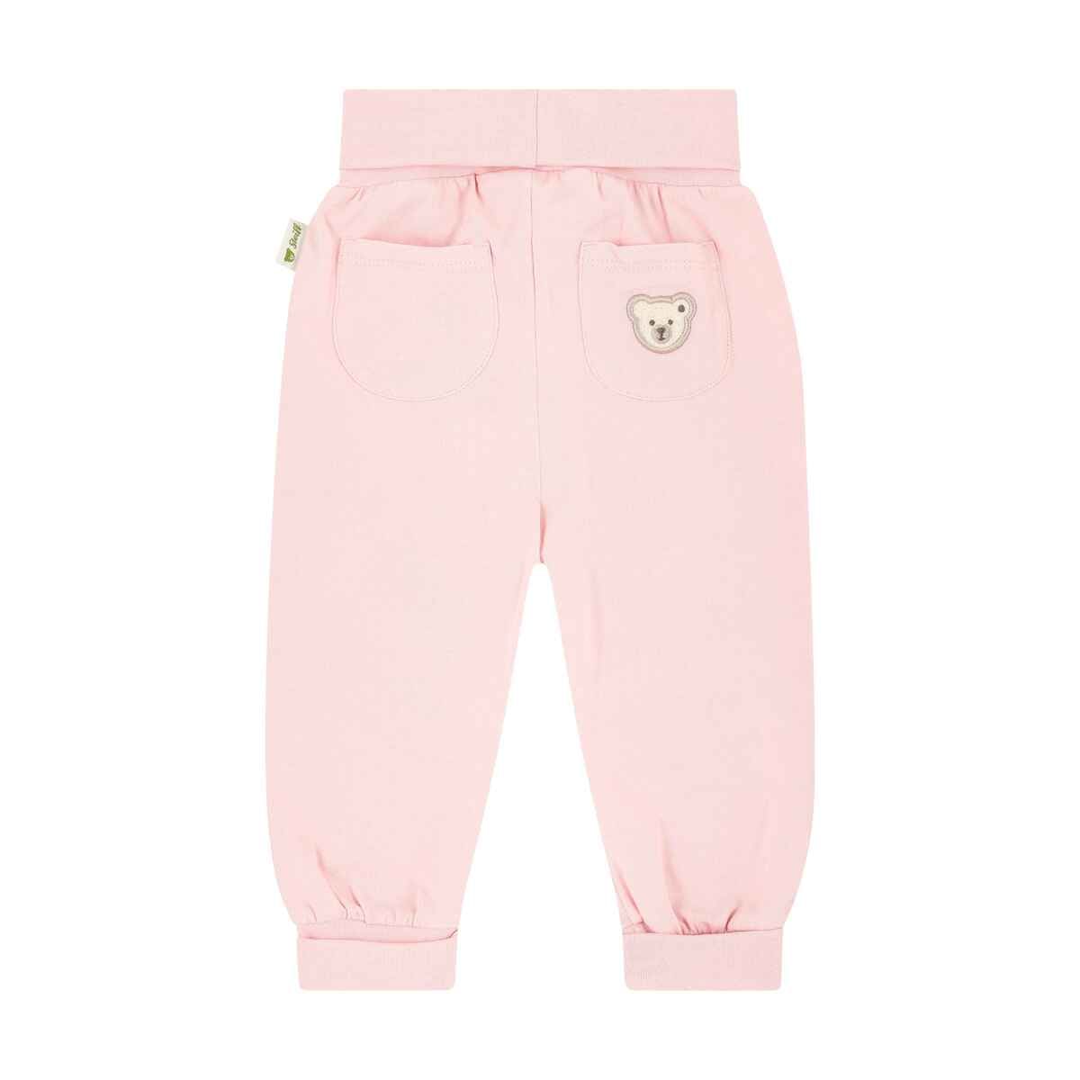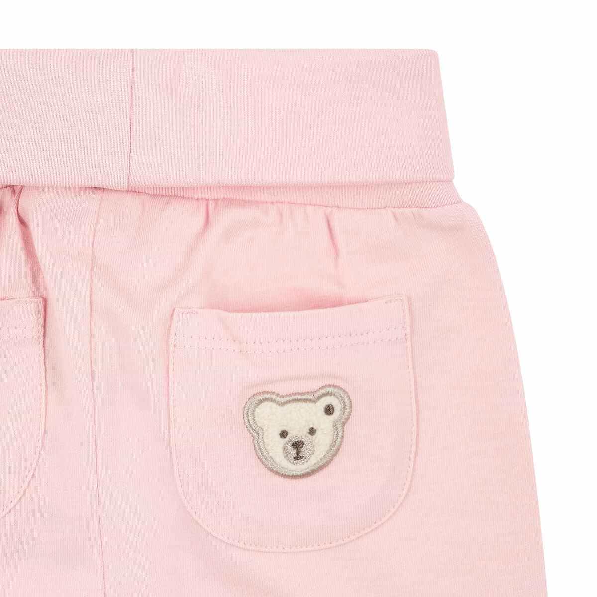 Затишні та неймовірно зручні штани, створені з натуральної бавовни. Тканина безпечна для ніжної шкіри малюка, запобігає перегріванню та подразненню. Просторий фасон забезпечує повну свободу рухів, зручний еластичний пояс допомагає надійно зафіксувати штанці, не сковуючи дитину. Модель доповнює аплікація у вигляді пухнастого ведмедика Тедді