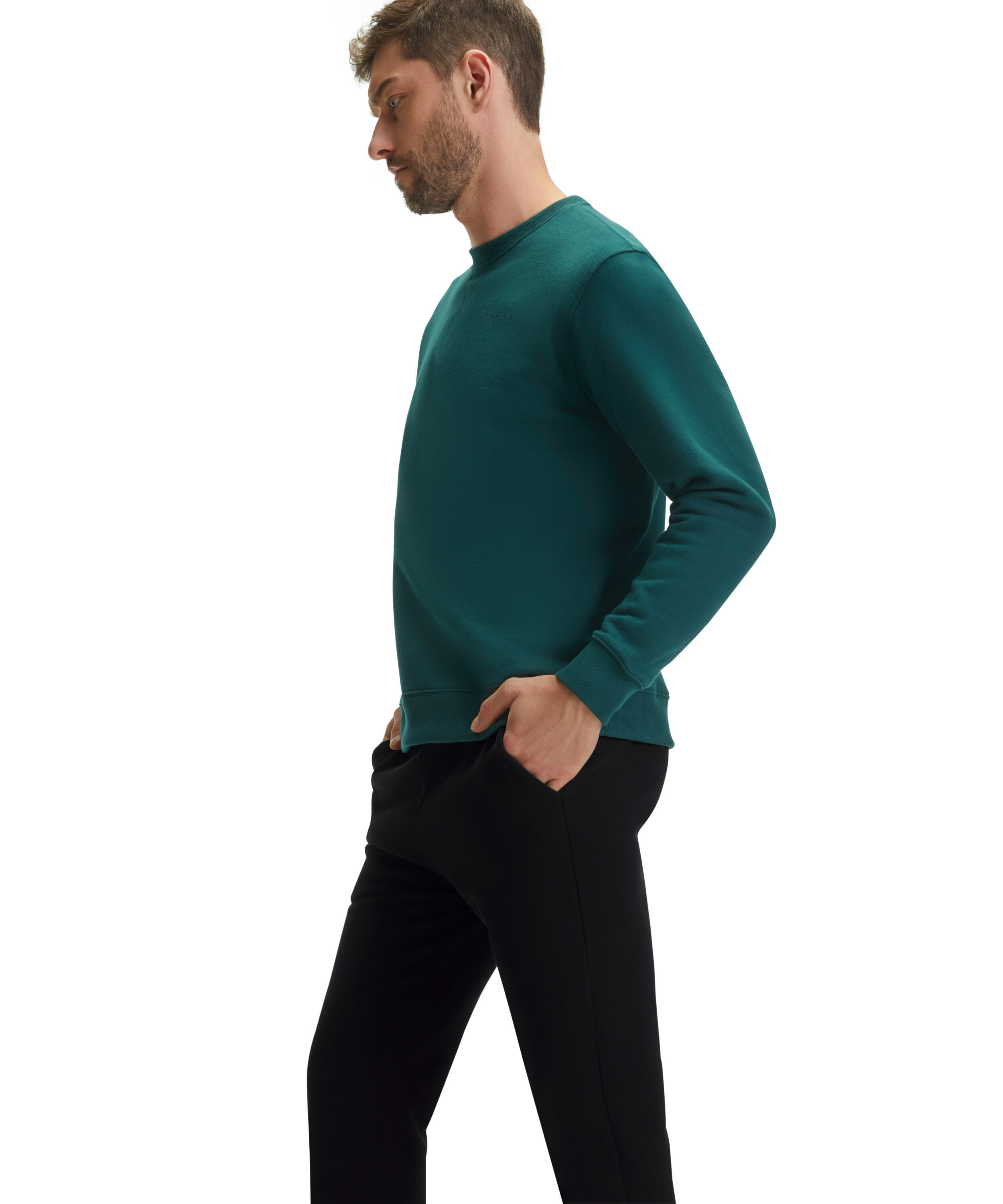 Виготовлені з високоякісної єгипетської бавовни, ці повсякденні спортивні штани зручні та мають стильний вигляд. У той час як зовнішня сторона щільного матеріалу гладенька -внутрішня сторона має начіс, що робить тканину особливо м'якою та приємною на шкірі. Крій сучасний повсякденний, штанини злегка звужуються до низу та мають тонкий манжет. Похилі бічні кишені та практичний пояс на шнурку для регулювання ширини забезпечують додатковий комфорт.