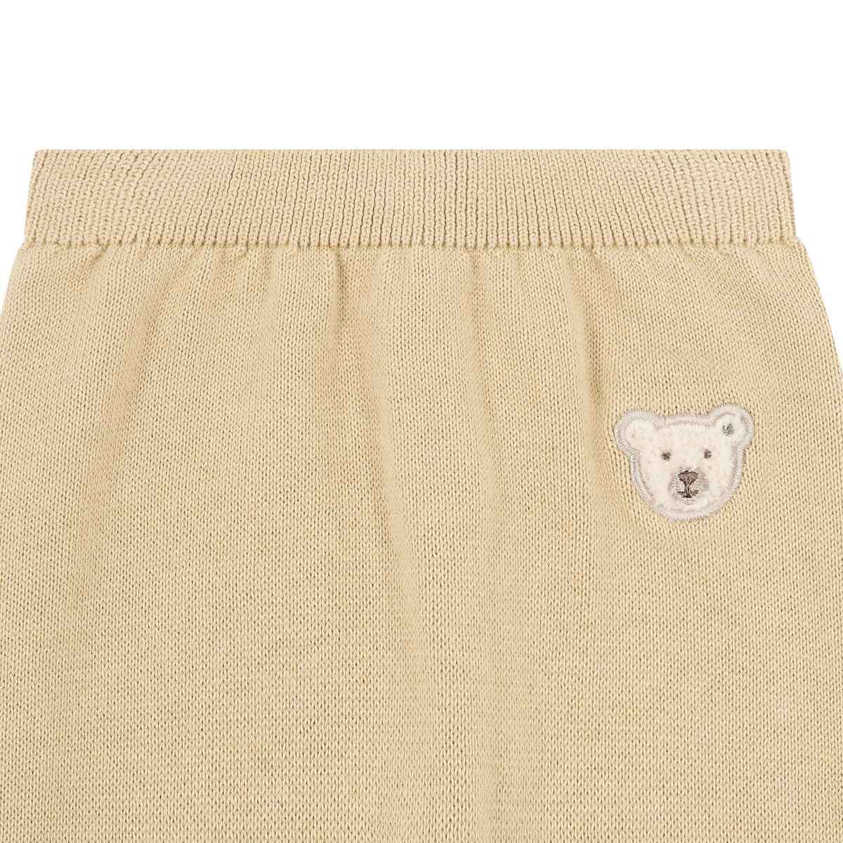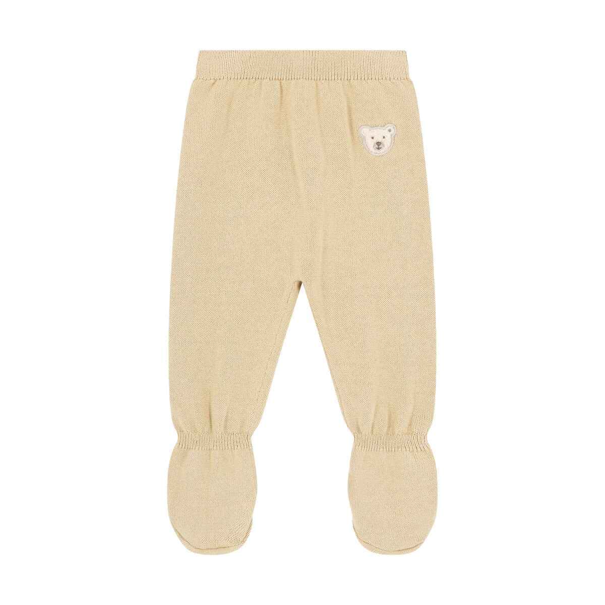Штани Baby Wellness — затишна модель, виконана з м’якого в’язаного бавовняного полотна, що ніжно огортає дитину комфортом. Еластичний пояс забезпечує надійну посадку та свободу рухів, м’який відтінок робить дизайн універсальним і вишуканим. Іконичний ведмедик Steiff позаду додає милий акцент і створює відчуття тепла та затишку. Ідеальний вибір для щоденного комфорту та ніжних обіймів.