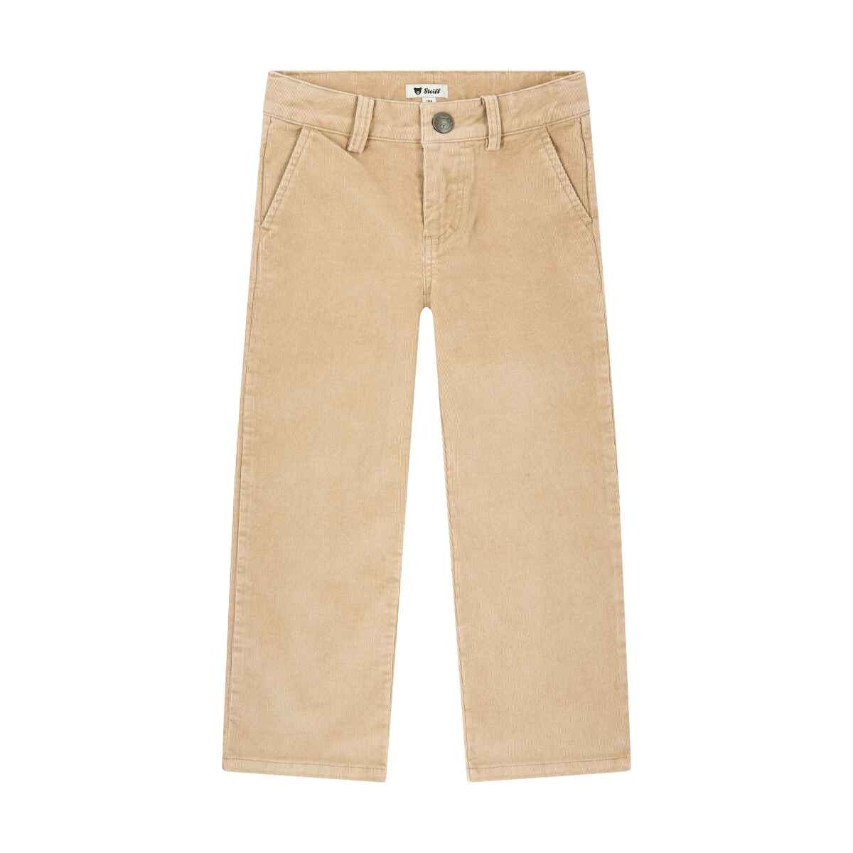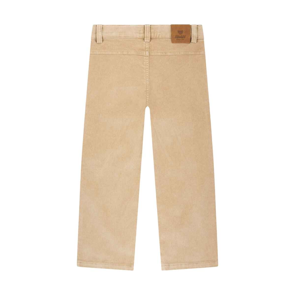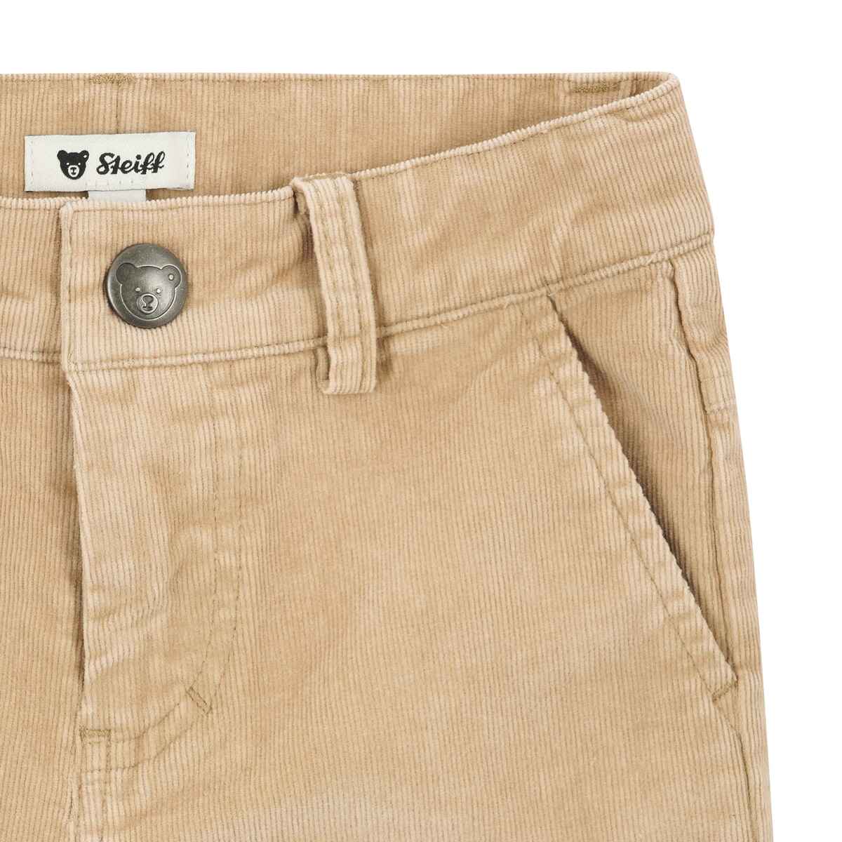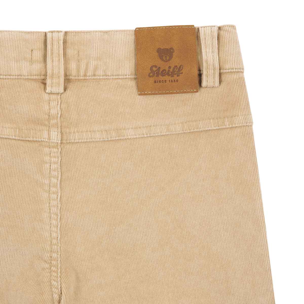 Класичні штани Woodland з м’якого вельвету стануть стильним і зручним вибором на кожен день. Натуральна еластична бавовняна тканина забезпечує приємні відчуття та свободу рухів. Косі бічні кишені додають практичності, а пояс із блискавкою та ґудзиком гарантує комфортну посадку. На поясі ззаду розташований фірмовий шкіряний патч із ведмедиком Steiff — стильний акцент у повсякденному образі.