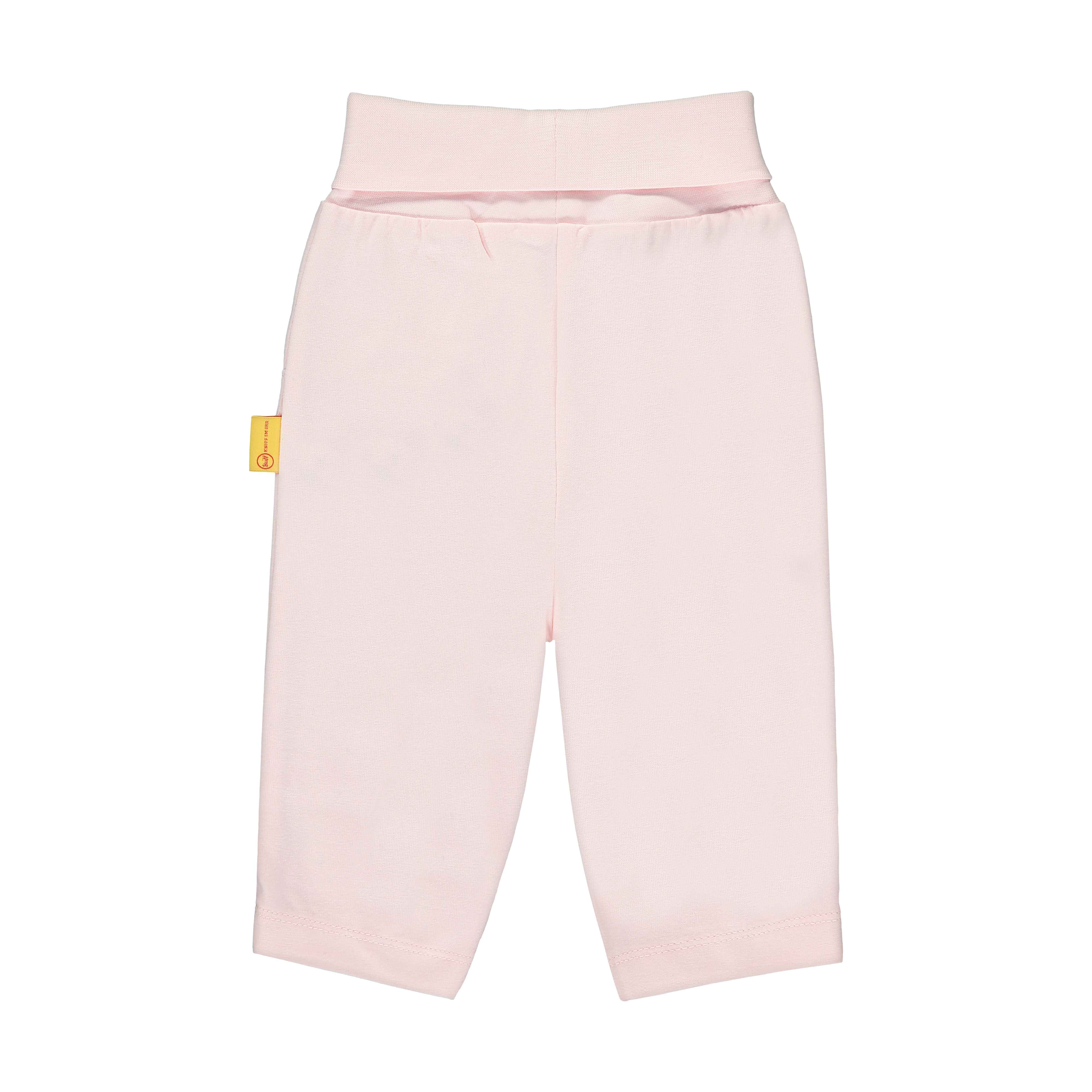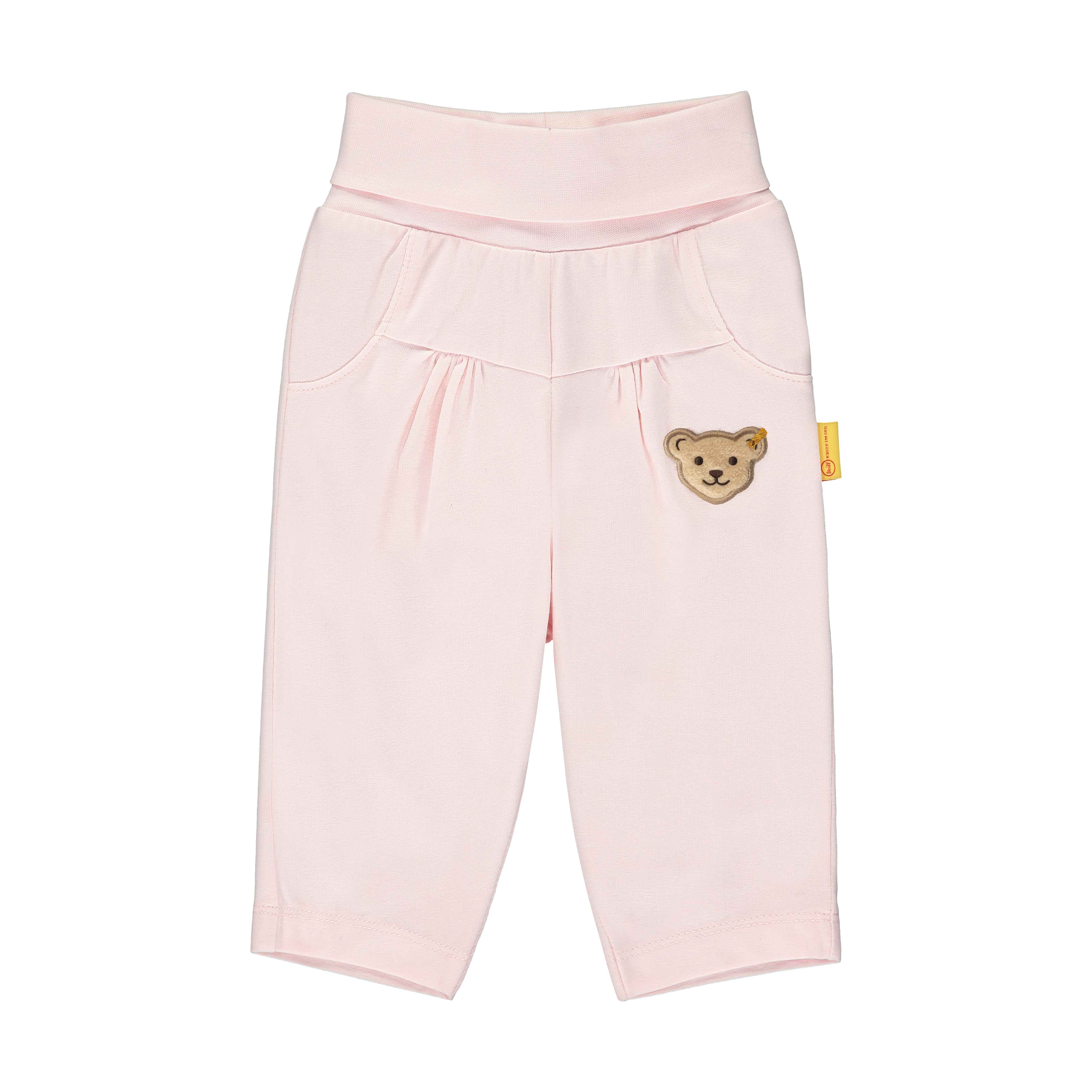 Штани Bear In My Heart - яскраві та зручні, вони подарують цілковитий комфорт і підійдуть для будь-якої активності та відпочинку. Сертифікований бавовняний матеріал повністю безпечний для ніжної шкіри, не спричиняє алергічних реакцій і відмінно пропускає повітря. Штани доповнені еластичним широким поясом з відворотом, що гарантує цілковитий комфорт під час носіння. Пухнастий ведмедик Steiff Teddy надає особливої чарівності моделі