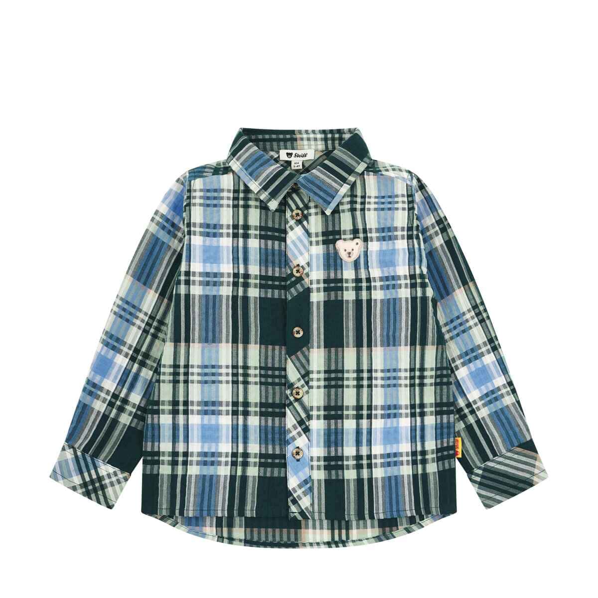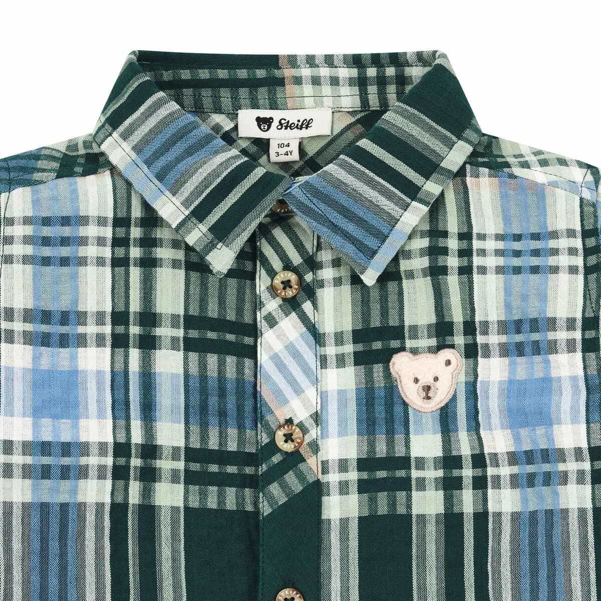 Сорочка Dinosaur поєднує класичний стиль і сучасний комфорт, створює бездоганний образ для будь-якої події. Натуральна бавовняна тканина приємна на дотик, добре пропускає повітря, забезпечує комфорт протягом усього дня. Вільний крій дарує легкість рухів, підходить для активного проведення часу. Візерунок у клітинку з гармонійним поєднанням відтінків додає образу виразності та стилю. Класичний комір і планка з ґудзиками формують акуратний силует. Фірмовий м’який мотив із ведмедиком на грудях підкреслює турботливий характер моделі та додає впізнаваного шарму.
