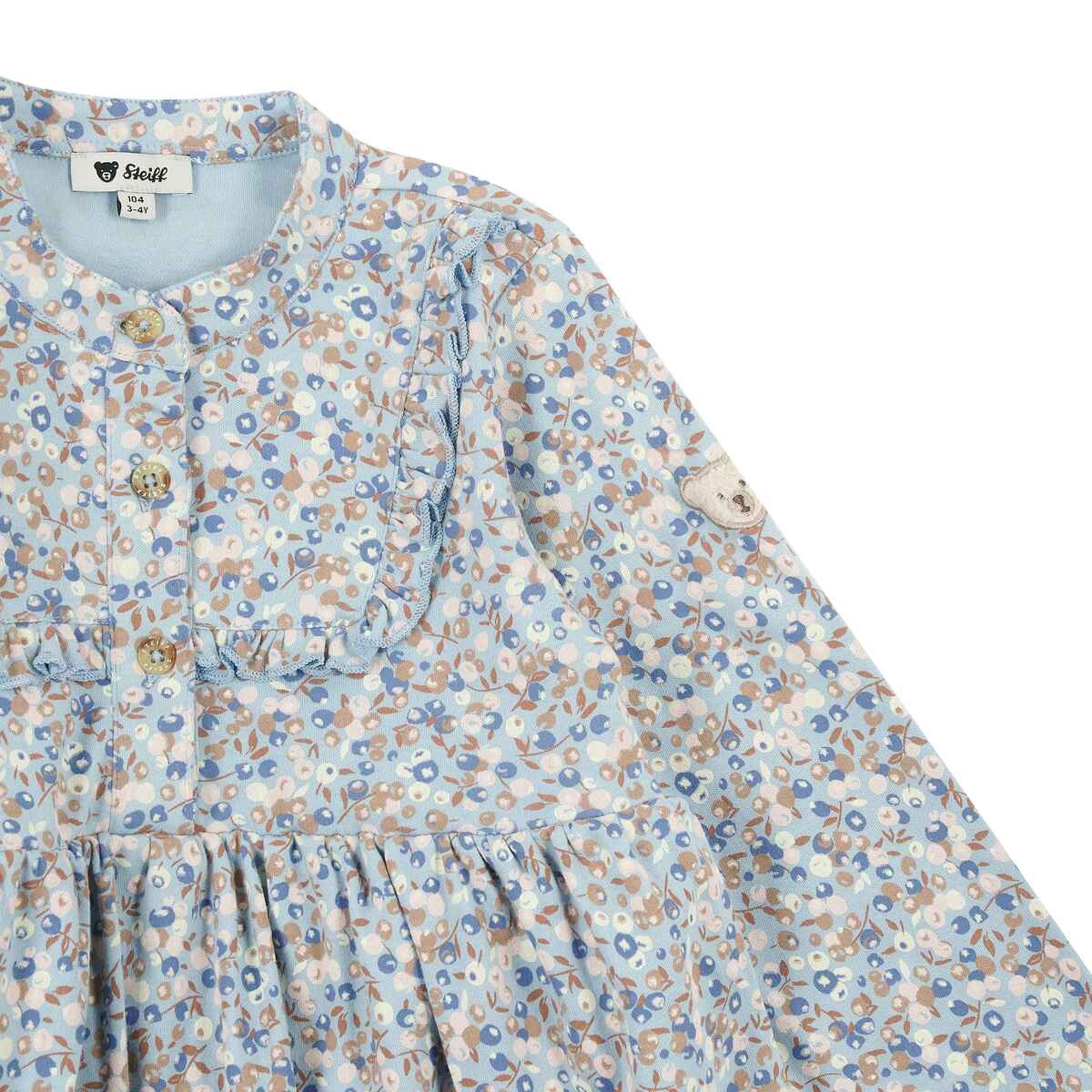 Сукня Nordicland – ніжна та романтична модель для особливих моментів. Виконана з м’якого бавовняного трикотажу із витонченим квітковим принтом, вона поєднує в собі комфорт і стиль. Декоративні защипи та делікатні рюші додають шарму, а вузький комір-стійка та злегка об’ємні рукави формують елегантний силует. М’які складки на спідниці створюють красиву свободу рухів. Миловидний бантик біля горловини виступає грайливим акцентом, а гудзики ззаду роблять перевдягання зручним. Чудовий вибір для святкових та теплих сімейних моментів.