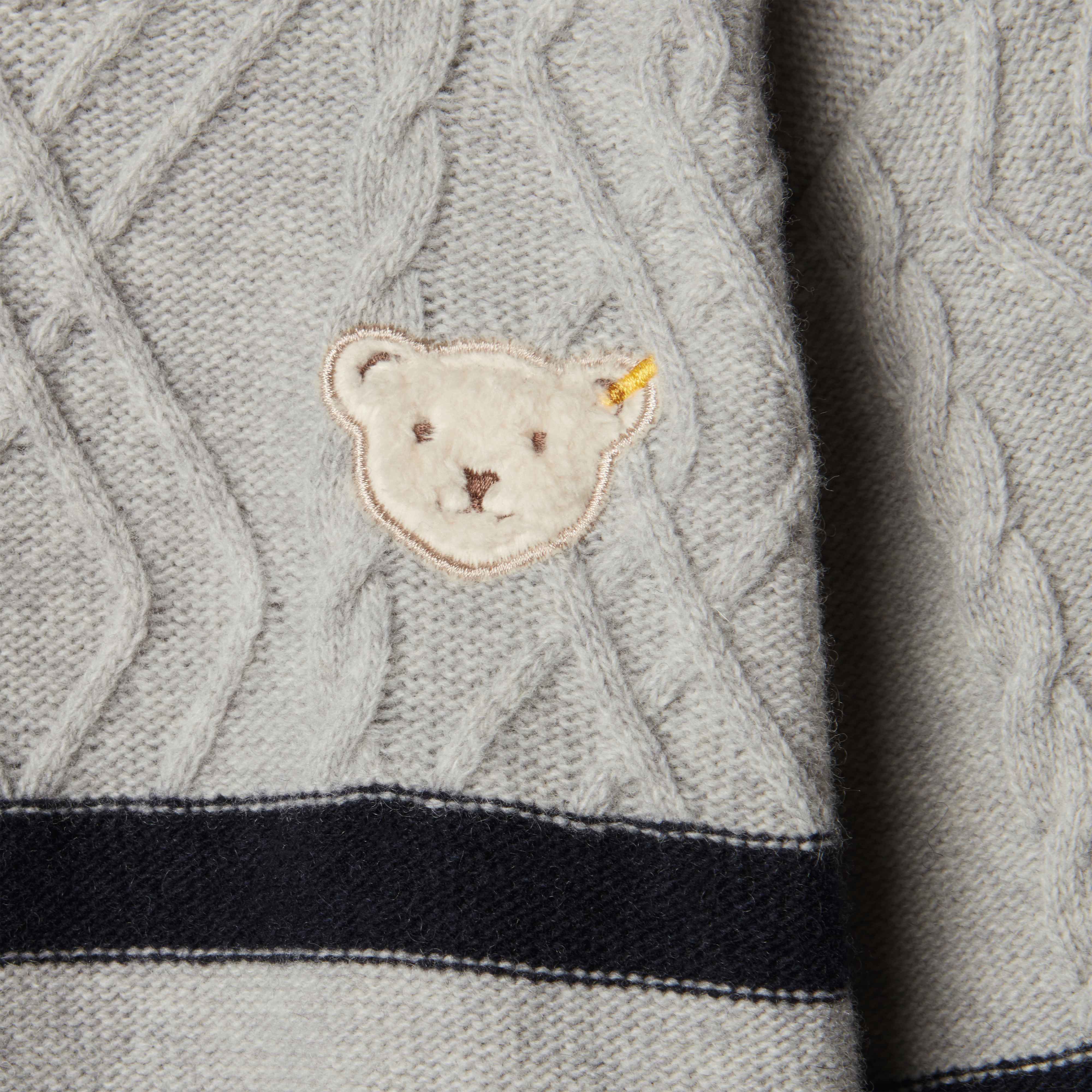 Класичний і елегантний светр Red and Blue Winter створений на основі м'якої, ніжної вовни, що гарантує оптимальне збереження тепла і комфорт для дитини. Еластична ребриста обробка не тільки надає виробу стильного зовнішнього вигляду, а й збільшує його зносостійкість. Пухнастий ведмедик Steiff Teddy ідеально вписується в загальний дизайн.