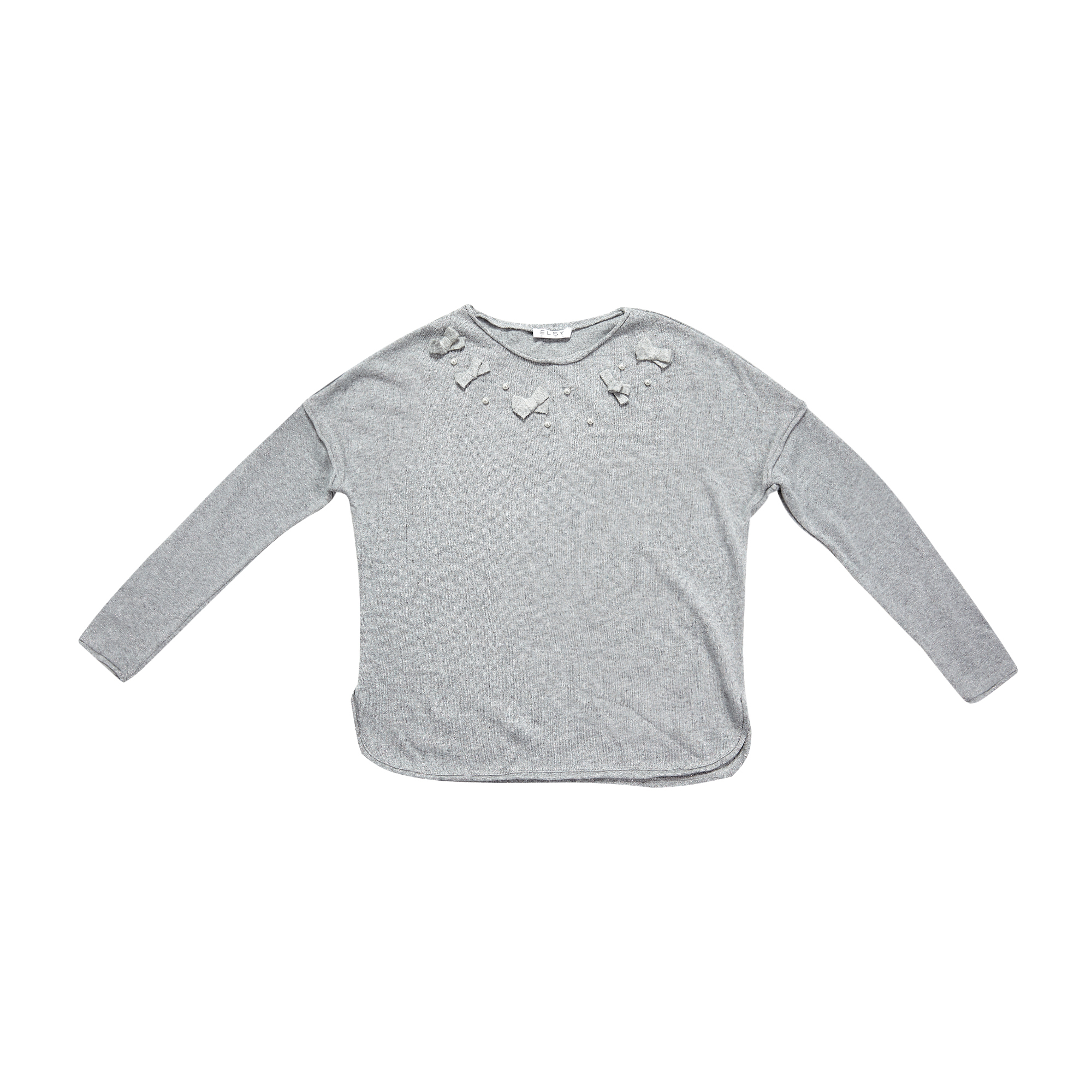Светр Tata – елегантна та затишна модель для дівчинки, у якій лаконічний дизайн поєднується з ніжними декоративними деталями. Завдяки унікальному складу матеріалів виріб приємний до тіла, м’який на дотик, добре зберігає тепло та форму. Акуратні бантики й декоративні перлинки в зоні горловини додають образу витонченості та святкового настрою. Вільний крій забезпечує комфорт і свободу рухів, робить светр доречним для повсякденних образів і особливих випадків.