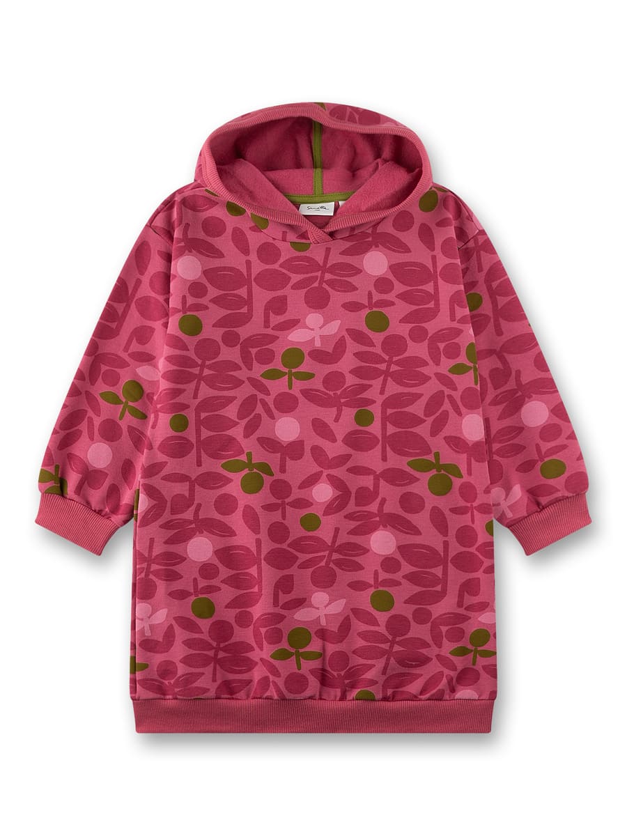 Сукня з капюшоном Clover — стильне й зручне вбрання для щоденних пригод. М’яка органічна бавовна з додаванням еластану дарує комфорт і приємне відчуття на шкірі, яскравий рослинний принт створює грайливий настрій. Вільний крій і капюшон додають практичності, роблячи сукню ідеальною для прогулянок і активних днів. Натуральна тканина безпечна для ніжної шкіри дитини.