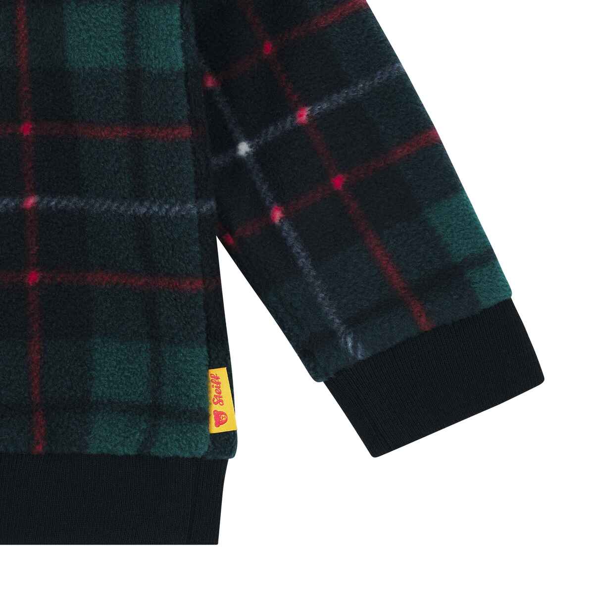М’який флісовий світшот Celebration створює приємне тепло та комфорт у прохолодні дні. Класичний тартановий візерунок у темно-синіх, зелених і червоних тонах виглядає стильно та по-зимовому затишно. Прямий крій із трикотажною горловиною та манжетами забезпечує зручність і свободу рухів під час активних прогулянок. Фірмовий ведмедик Steiff на грудях додає образу особливої чарівності — ідеальний вибір для щоденного тепла та комфорту.