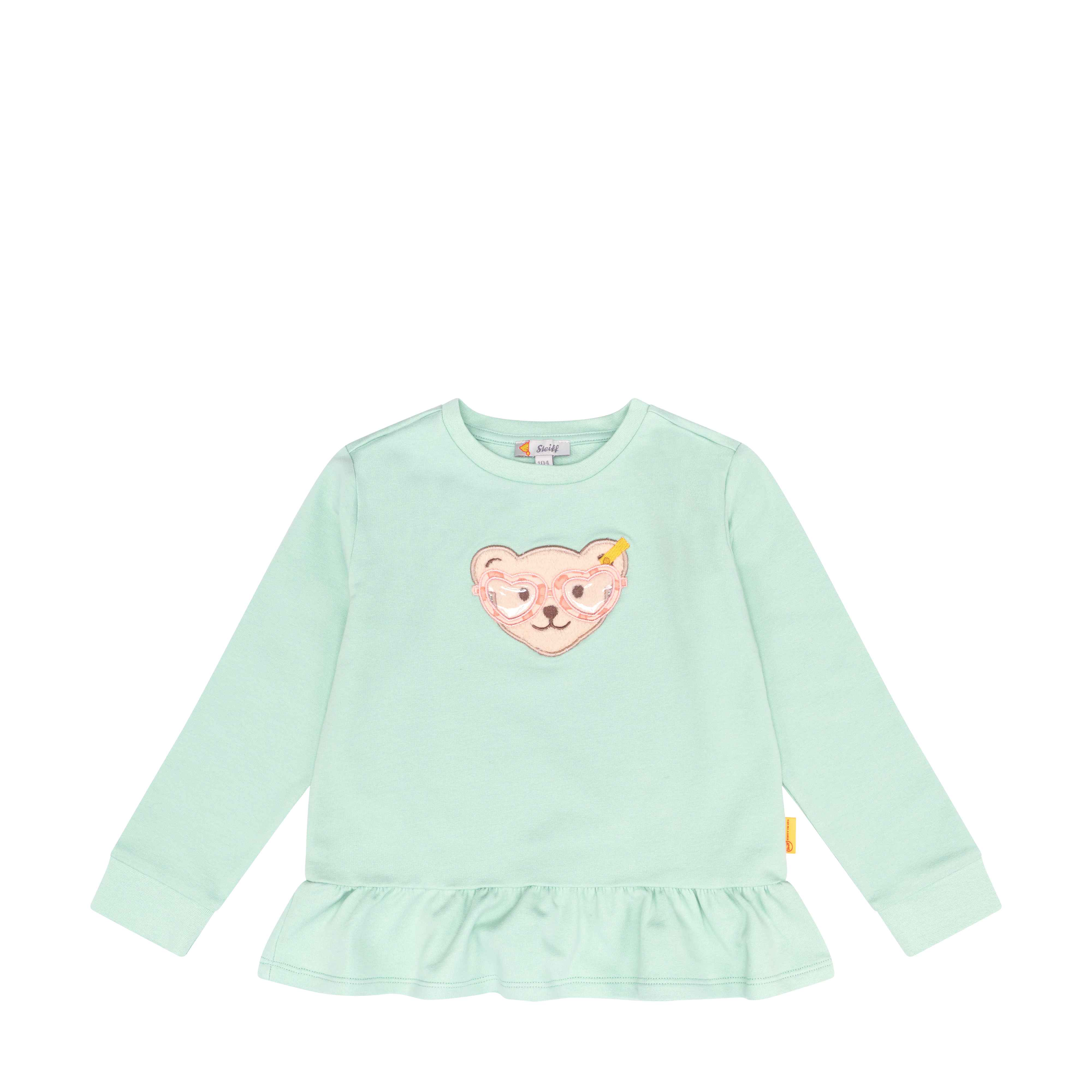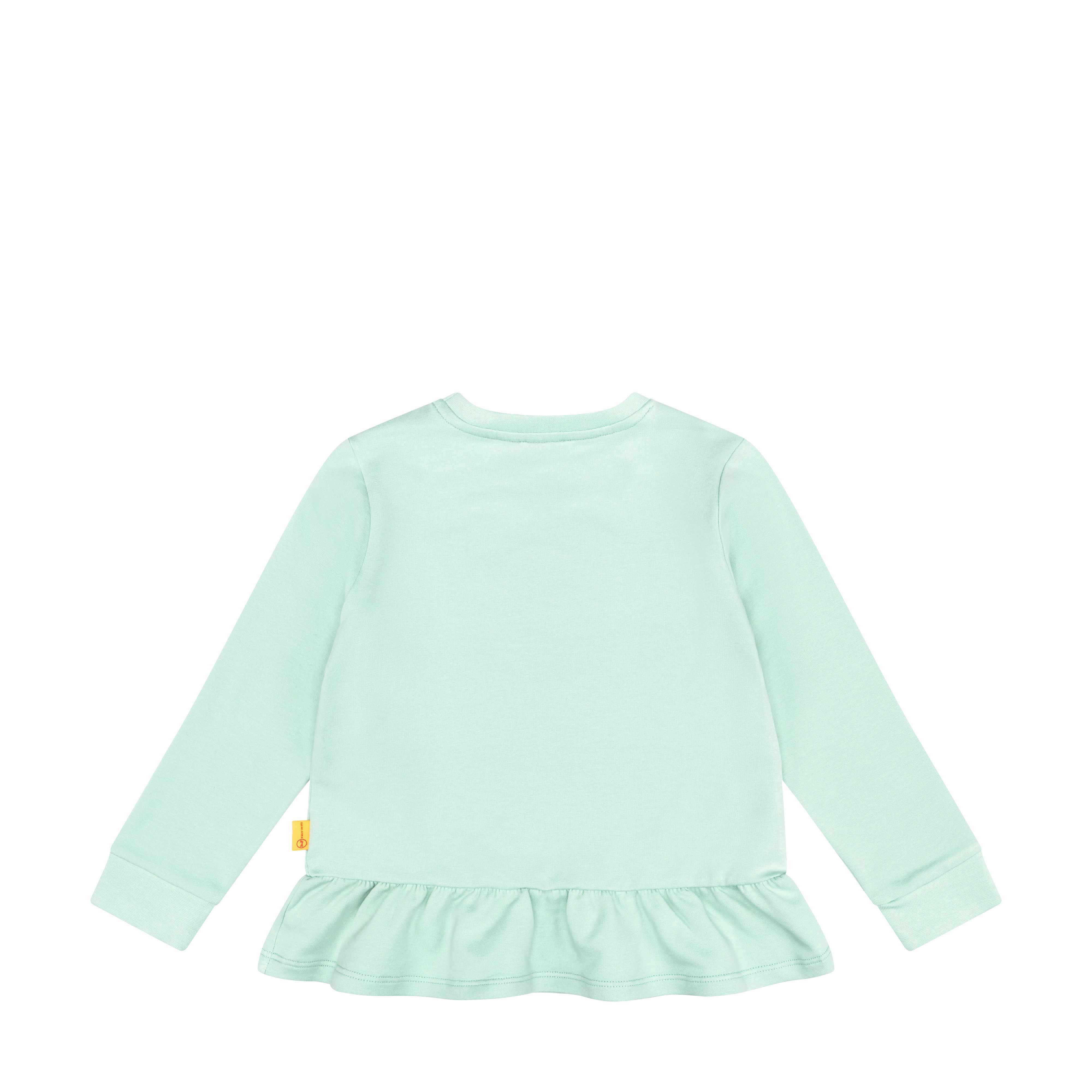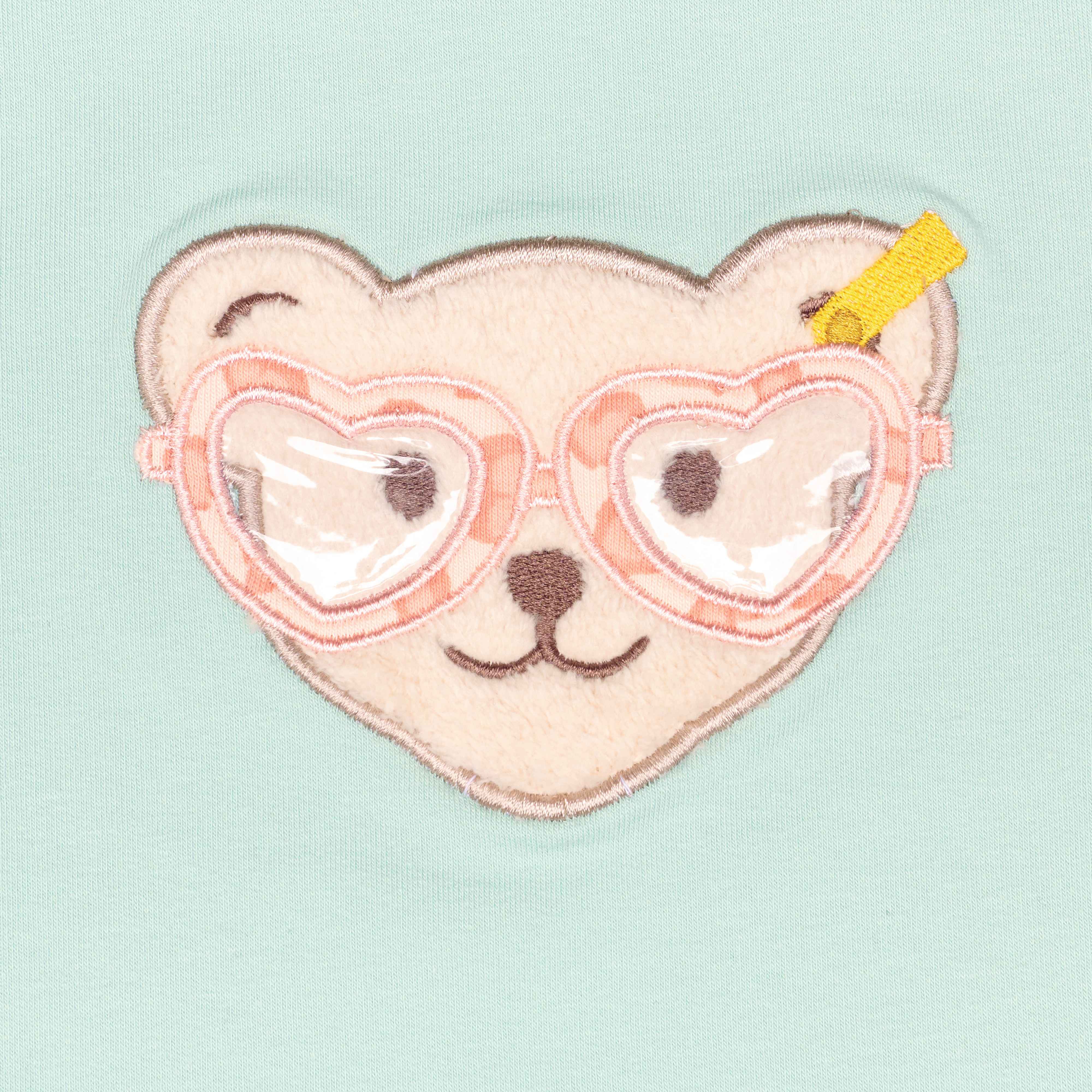 Світшот Jungle Feeling має стильне й елегантне виконання. Створений на основі сертифікованої бавовни, яка повністю безпечна і не викликає алергічних реакцій. М'яка тканина гарантує виняткове тепло та комфорт, а еластичне оздоблення дає змогу легко одягати та знімати виріб. Милий волан на подолі є родзинкою моделі. На грудях красується великий пухнастий ведмедик Steiff Teddy в сонцезахисних окулярах.
