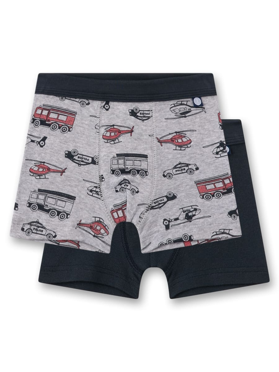 Труси-боксери Grey Style — практичний комплект для хлопчиків із яскравим принтом транспорту, що робить повсякденну білизну цікавою та додає образу активного настрою. Вироби виготовлені з натуральної бавовни у м’якому меланжевому трикотажі в рубчик, який добре пропускає повітря та забезпечує приємні відчуття під час носіння. У наборі дві моделі: одна однотонна темно-синя, інша прикрашена веселим принтом. Еластичний пояс м’яко фіксується на талії, забезпечуючи комфортну посадку без тиску. Завдяки зручному крою боксери чудово підходять для щоденного використання та активного способу життя.