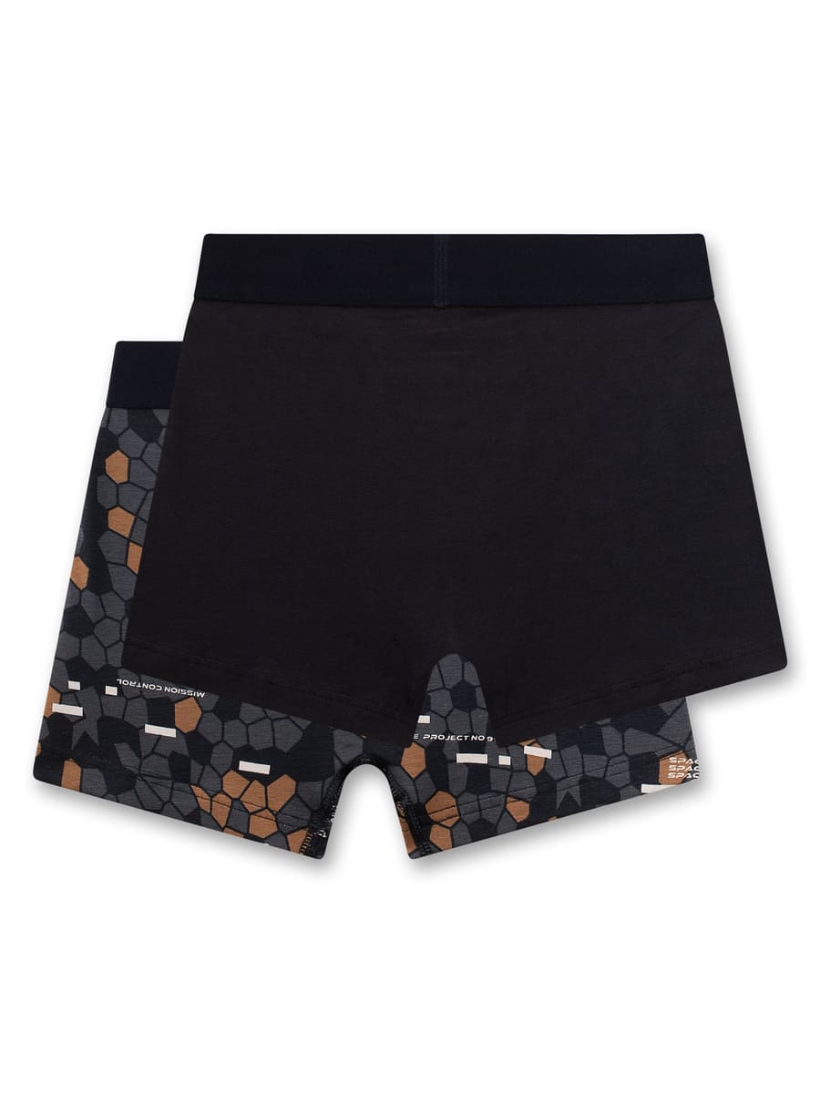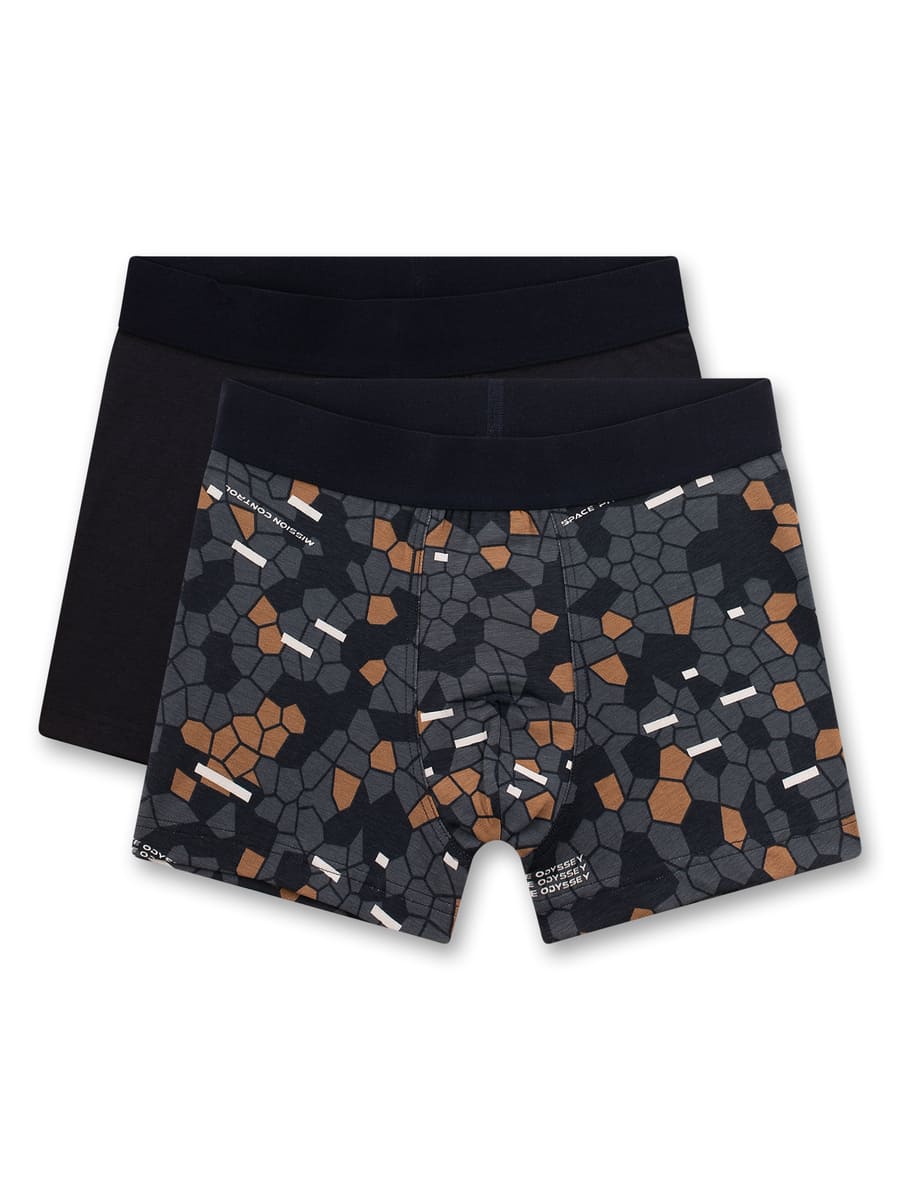 Труси-шорти Honeycombs поєднують стиль і комфорт для активних хлопчиків. У комплект входять дві моделі: однотонні темно-сині та з модним принтом у космічному стилі у відтінках сірого, коричневого та білого. Еластичний матеріал із бавовни з додаванням еластану м’яко прилягає до тіла та забезпечує свободу рухів. Зручний пояс гарантує ідеальну посадку без тиску, міцна трикотажна тканина стійка до частих прань і сушіння.