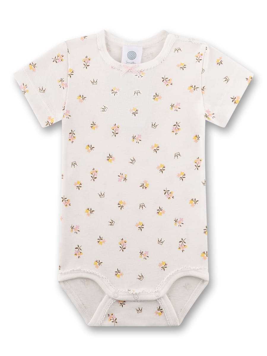 Изысканное боди Small Bouquets создано для нежной кожи малыша и дарит ощущение природного комфорта с первых дней жизни. Лёгкий органический хлопок отличается особой мягкостью, деликатно окутывает тело ребёнка, позволяет коже свободно дышать и поддерживает приятный микроклимат в течение дня. Ткань приятна на ощупь, хорошо пропускает воздух, сохраняет естественную мягкость даже после многократных стирок. Модель украшена изящным цветочным принтом с маленькими букетами и аккуратными коронами, создающими нежный и утончённый образ. Продуманный крой обеспечивает свободу движений, короткие рукава добавляют лёгкости, удобные кнопки внизу позволяют быстро и комфортно переодевать малыша. Аккуратная обработка краёв подчёркивает премиальное качество изделия. Материал сертифицирован независимыми европейскими институтами Organic Cotton, безопасен к здоровью малыша, свободен от вредных соединений.