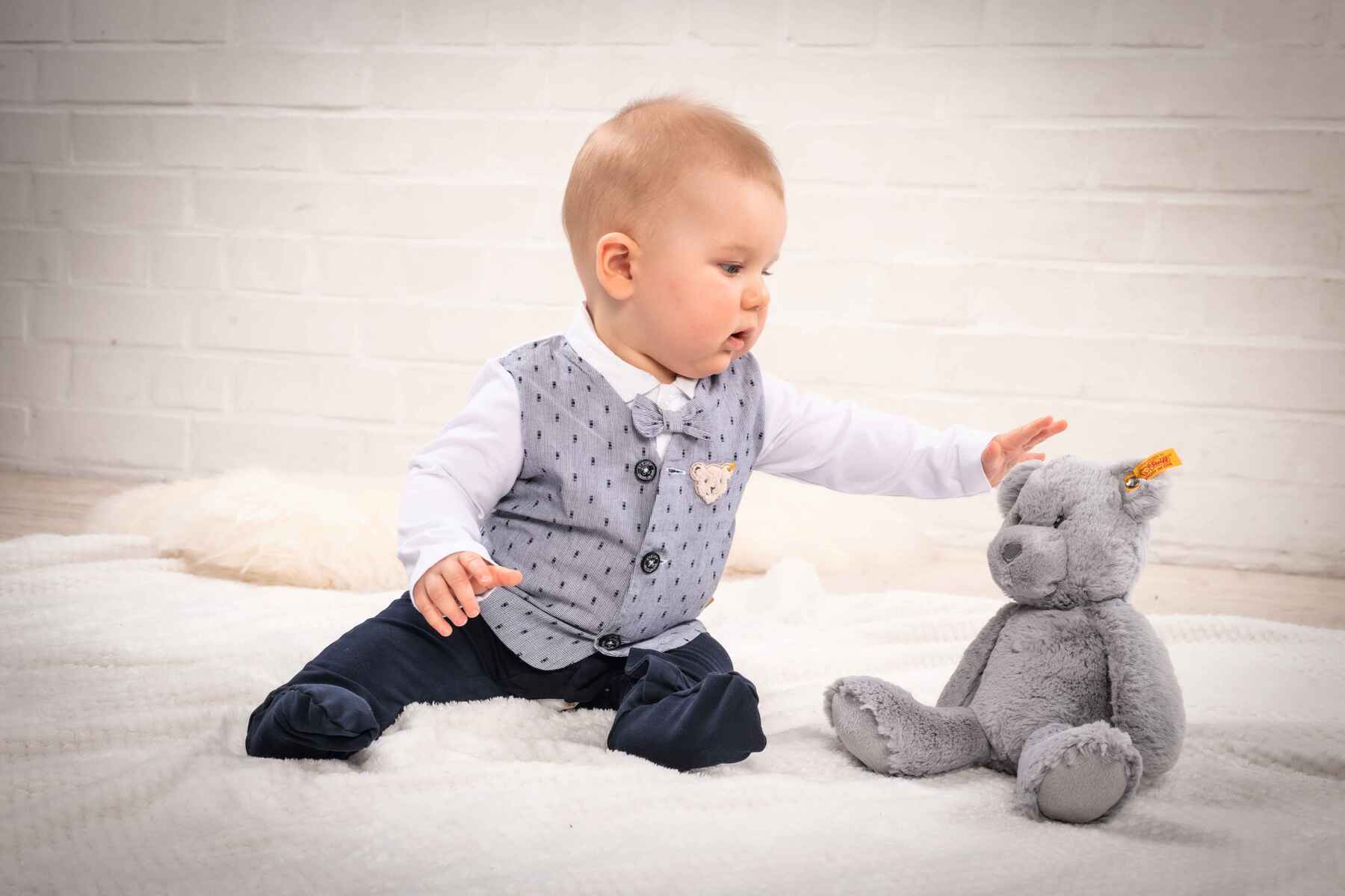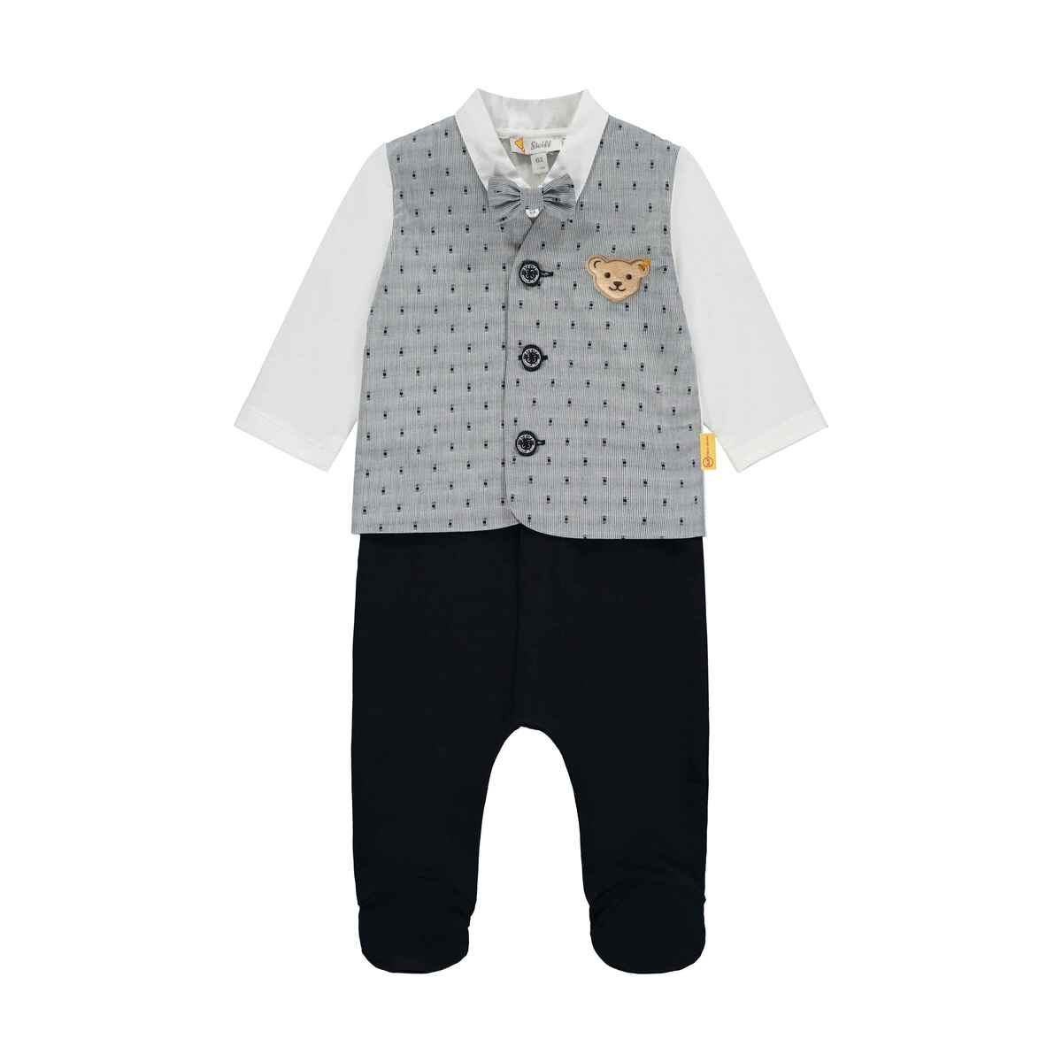 Элегантный комбинезон Special Day в стиле маленького джентльмена создан для самых особенных моментов. Благодаря дизайну в виде пиджака с имитацией рубашки и съемной бабочкой образ выглядит празднично и безупречно. Застежки спереди и на ножке позволяют легко и быстро одевать малыша.Изделие изготовлено из высококачественного хлопка, который абсолютно безопасен для нежной детской кожи. Натуральная ткань мягкая, дышащая и не вызывает раздражений, обеспечивая максимальный комфорт даже при длительном ношении. Малыш будет чувствовать себя уютно и выглядеть невероятно стильно — настоящая звезда любого праздника.