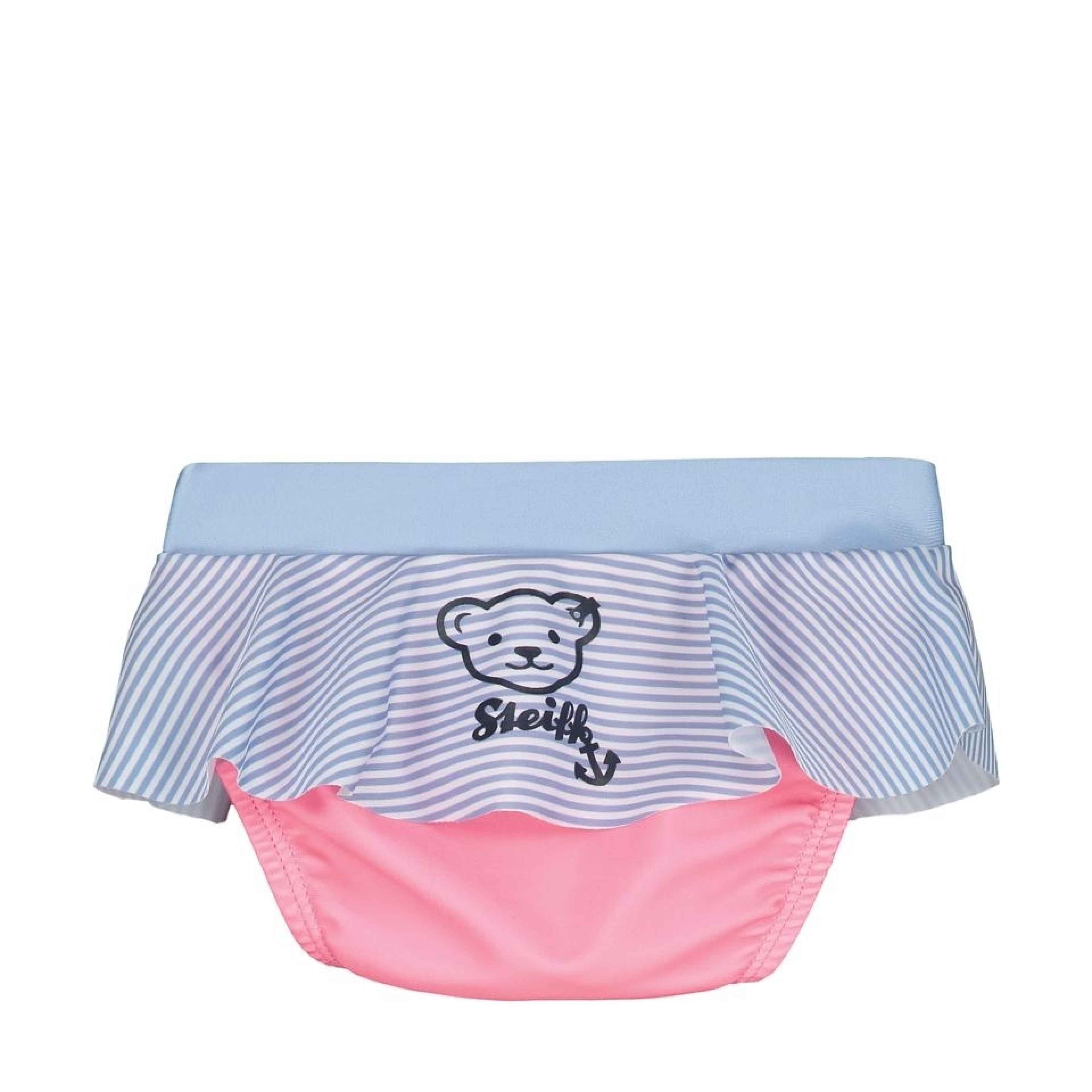 Плавки Navy Heart созданы с учетом максимального комфорта для самых маленьких поклонниц отдыха у воды. Выполнены из мягкого материала, идеально подходящего для чувствительной кожи младенцев. Плавки имеют яркий и очаровательный фасон, благодаря миловидным оборкам и бантику на поясе. Изображение мишки Steiff Teddy сзади отлично вписывается в дизайн изделия