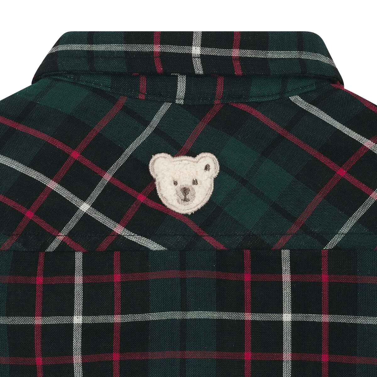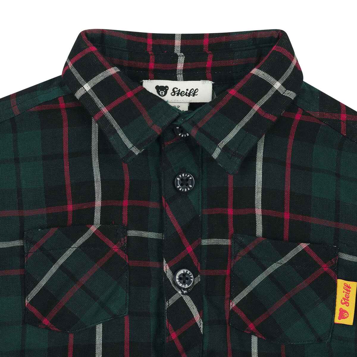 Мягкая фланелевая рубашка Celebration в классическую клеточку создана для комфортных и стильных образов каждый день. Прямой крой, традиционный воротник и накладные карманы на груди делают ее универсальной – подходит и для прогулок, и для особых моментов. Полная застежка на пуговицы обеспечивает удобство во время одевания. Теплая фланель приятно греет и дарит уют в прохладные дни, не раздражая нежную кожу малыша. На спине — фирменный мишка Steiff, придающий образу узнаваемый шарм.